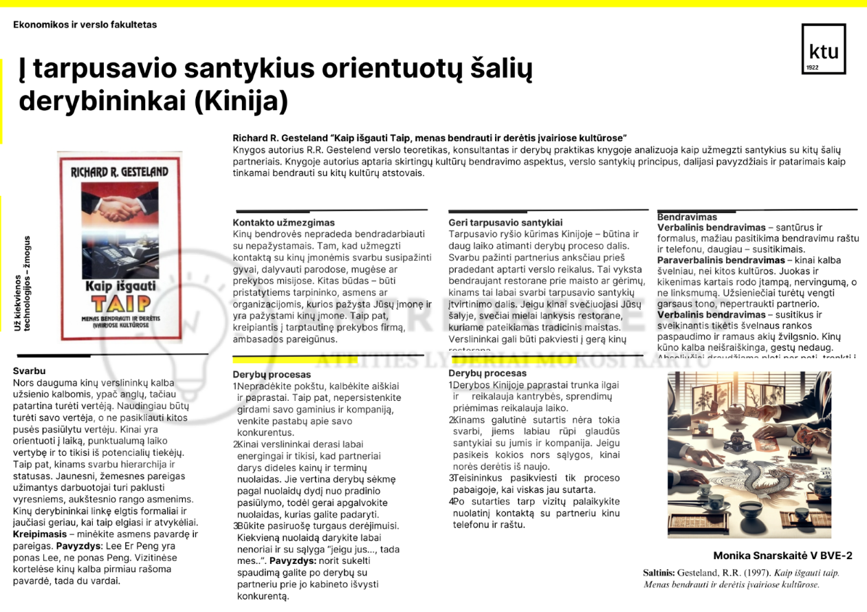 Šis darbas parodo kultūrinio jautrumo svarbą tarptautiniame versle, gebėjimą analizuoti derybų strategijas ir pritaikyti teorinį žinojimą praktiniame kontekste. Tai vertinga patirtis visiems, siekiantiems dirbti su globaliomis rinkomis.