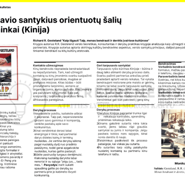 Būtinas pasiruošimas – vertėjas, supratimas apie elgesio normas, tikslingos nuolaidų strategijos.