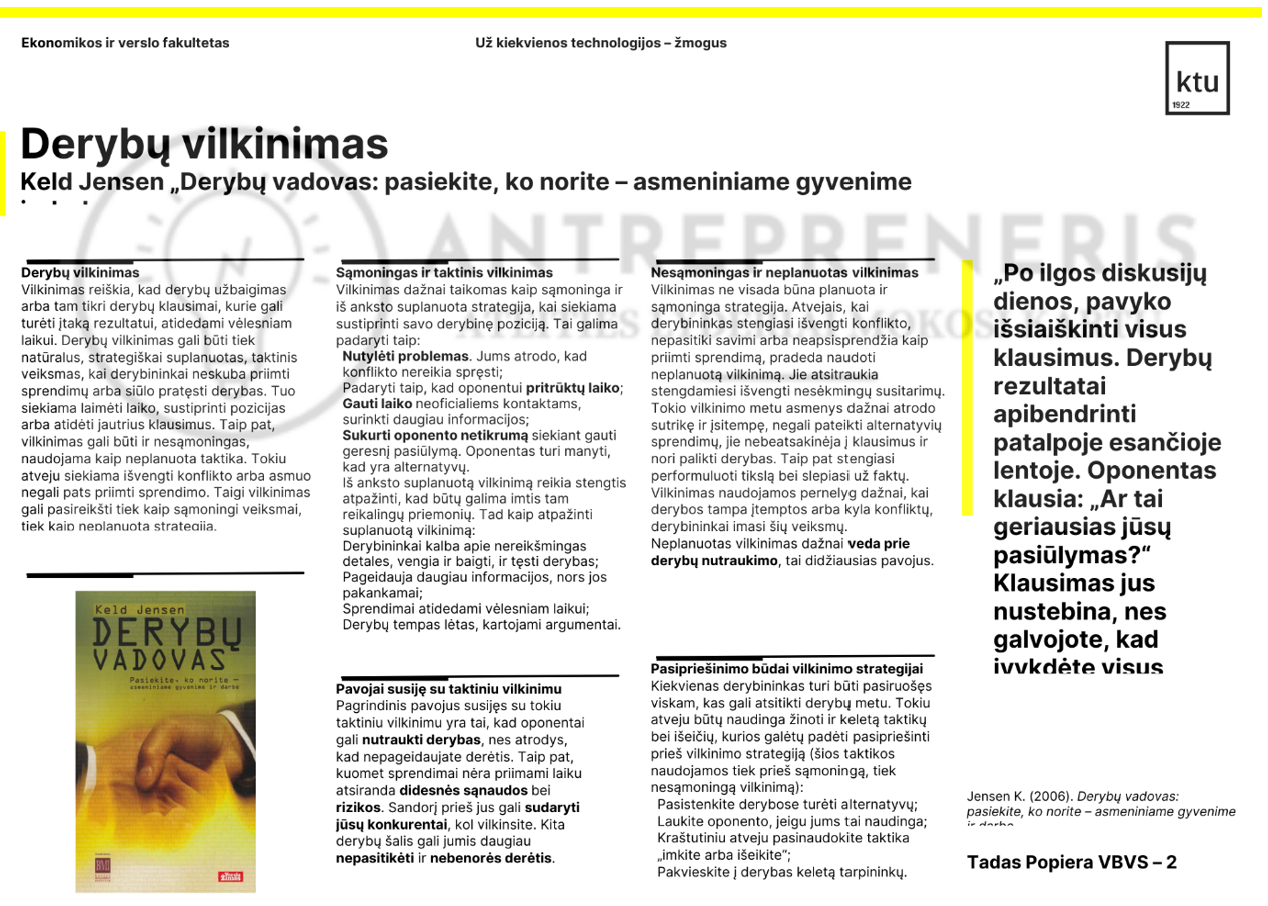 Derybų vilkinimas: taktika ar pavojus? (III kursas, V semestras, 2024 m.)