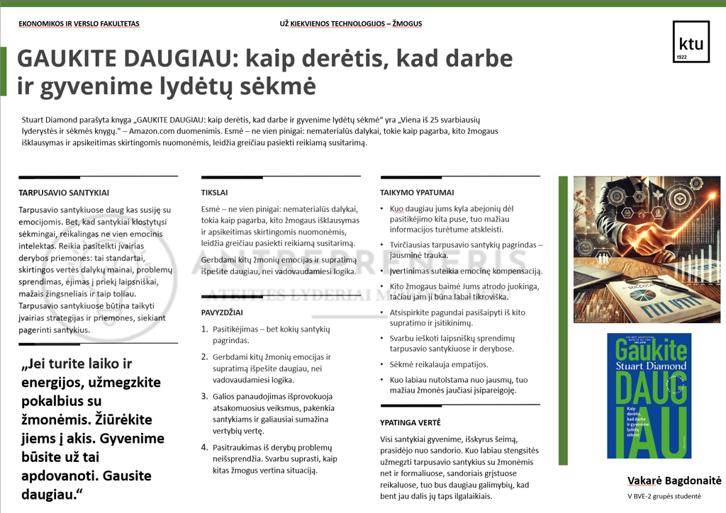 „GAUKITE DAUGIAU: kaip derėtis, kad darbe ir gyvenime lydėtų sėkmė“ (III kursas, V semestras, 2024 m.)