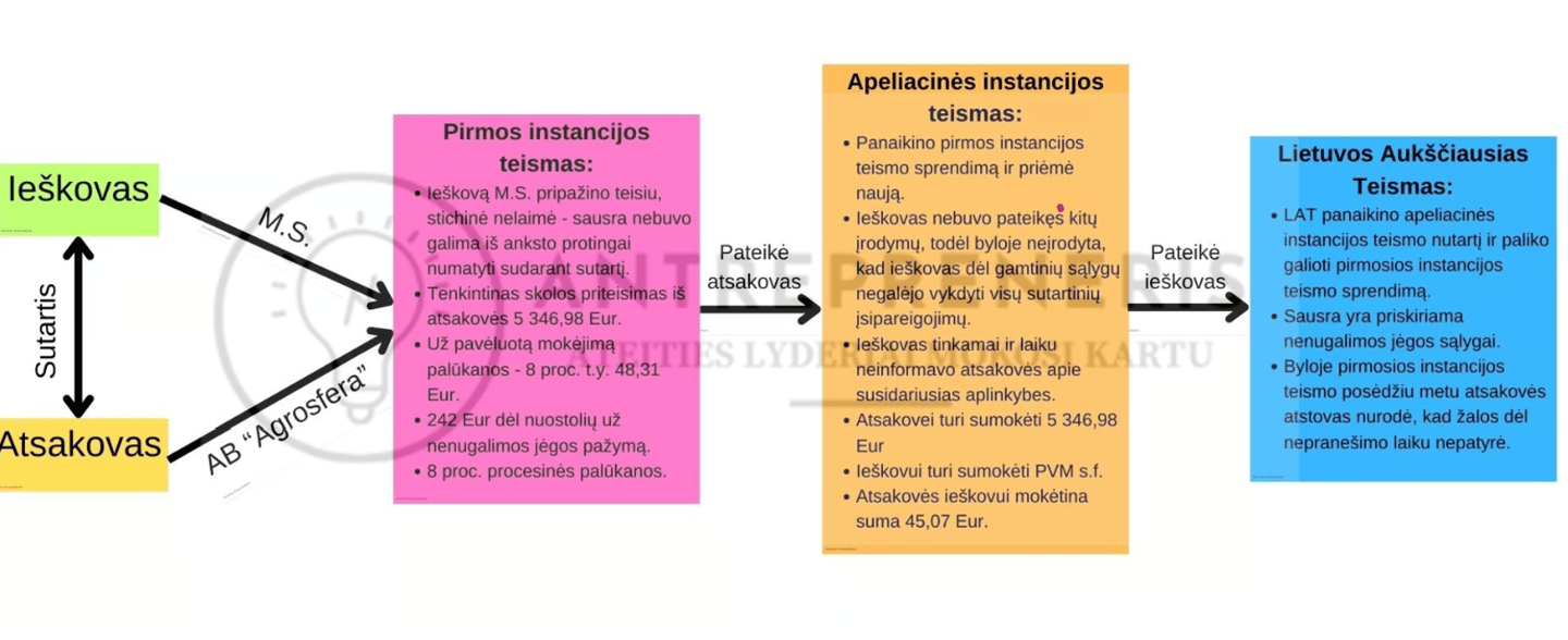 M.S. prieš AB „Agrosfera“ – teismo procesų eiga dėl sutartinių įsipareigojimų vykdymo esant nenugalimos jėgos aplinkybėms (sausrai), (II kursas, II semestras, 2023 m.)